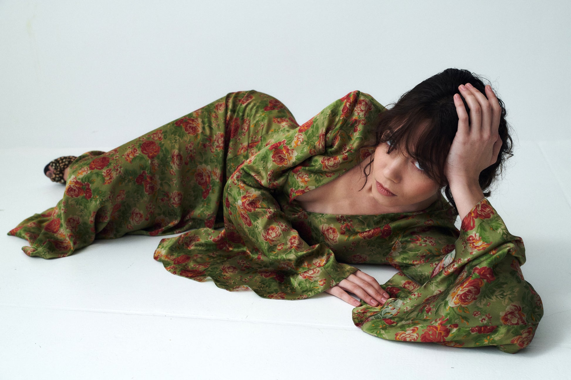 The Magnetica Dress is the epitome of sculptural elegance. Cut entirely on the bias, it is designed to glide and contour, creating the ultimate effortless, statuesque silhouette. Featuring a deep V-neckline and dramatically elongated flared sleeves, the design evokes a palpable sense of romantic, sensual ease. Designed expressly for movement, the skirt sways with a hypnotic fluidity, ensuring you captivate from every angle.